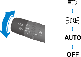 Tourner la commande des phares pour allumer et éteindre les phares et autres éclairages extérieurs.