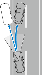 La caméra de détection avant (FSC) détecte les lignes blanches (lignes jaunes) de la voie du véhicule dans laquelle il se déplace et, si le système détermine qu'il peut s'écarter de sa voie, il va utiliser la direction assistée électrique pour aider le conducteur à rester dans la voie. Le système alerte également le conducteur en affichant une alerte sur l'affichage multi-informations et sur l'affichage de conduite active.