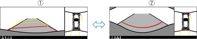 Il est possible de modifier le réglage de manière à afficher la vue de dessus/vue avant lors du passage de la marche arrière à une marche avant sans actionner l’interrupteur du moniteur de vue à 360°, afin de vérifier l'avant du véhicule pendant le stationnement parallèle.
