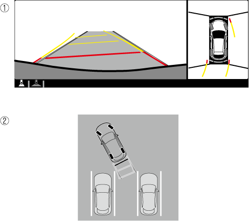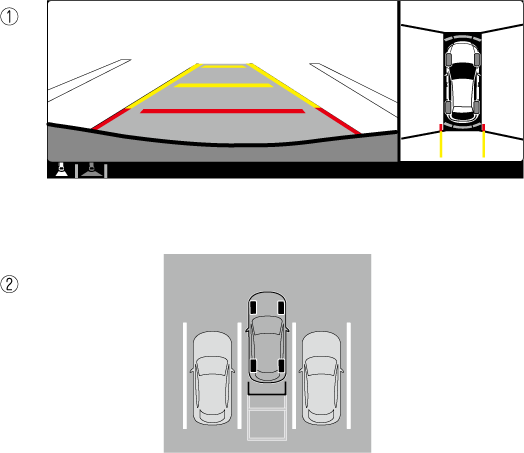 Comme il peut y avoir une différence entre l'image affichée à l’écran, comme indiqué ci-dessous, et les conditions réelles du stationnement, toujours vérifier la sécurité à l'arrière du véhicule et dans la zone environnante directement avec les yeux.
