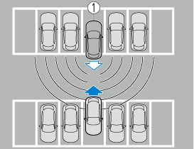 La fonction de détection arrière détecte les obstacles à l'aide des capteurs ultrasoniques arrière. En outre, si votre véhicule risque de heurter un objet cible à l'arrière lorsque vous effectuez une marche arrière, vous êtes averti du danger possible par un avertissement sonore et une indication d'avertissement sur l'affichage.