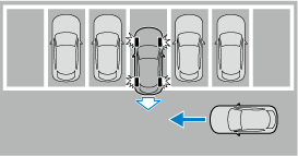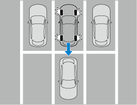 Lorsque vous conduisez en marche arrière, les fonctions suivantes de l’assistance au freinage intelligent (SBS) sont activées.