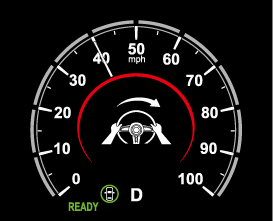Lorsque que l'assistance à la direction est en marche, le système informe le conducteur à l'aide d'un avertissement sonore, de l'affichage multi-informations et de l'affichage de conduite active qu'il assiste le conducteur dans la manœuvre du volant.