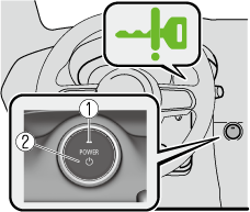 Appuyer à fond sur la pédale de frein et continuer d’appuyer sur le contacteur d’alimentation jusqu'à ce que le système EV soit complètement démarré. Après le démarrage du système EV, le témoin (vert) du contacteur d’alimentation s'éteint et le contacteur d’alimentation est positionné sur ON.