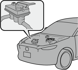 Si le niveau se trouve au niveau ou à proximité du repère LOW, ajouter suffisamment de liquide de refroidissement spécifié dans le réservoir de liquide de refroidissement pour la protection contre le gel et la corrosion et porter le niveau jusqu'au repère FULL.