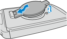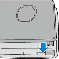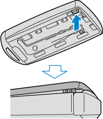 Retirez le couvercle inférieur tout en faisant glisser le bouton dans le sens de la flèche.