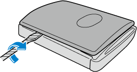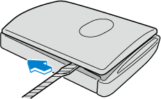 Insérer un tournevis à tête plate enroulé de ruban dans l'espace et le glisser dans le sens de la flèche.