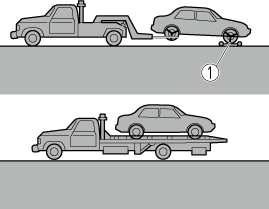 Pour remorquer un véhicule, le transporter avec les deux roues avant soulevées du sol ou avec toutes les roues avant et arrière soulevées du sol.