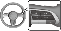 Si votre Mazda dispose de l’interrupteur au volant suivant, votre Mazda est équipée du système de régulation de la vitesse à radar Mazda avec fonction Stop & Go (MRCC avec fonction Stop & Go).