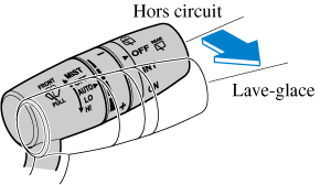 Si le lave-glace est activé quand les essuie-glaces ne fonctionnent pas, les essuie-glaces vont fonctionner à plusieurs reprises.