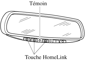Le système HomeLink remplace jusqu'à 3 télécommandes en un seul composant intégré an rétroviseur à anti-éblouissement automatique. Il est possible de commander des portes de garage, des barrières et autres dispositifs en appuyant sur les touches HomeLink sur le rétroviseur à anti-éblouissement automatique.
