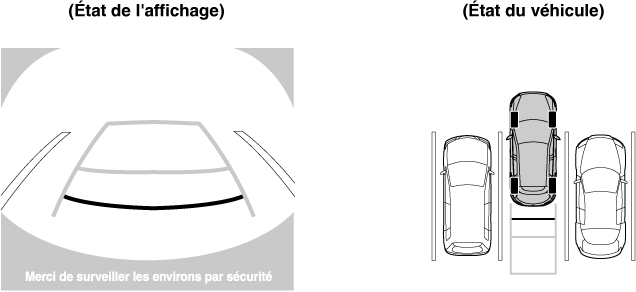 Comme il peut y avoir une différence entre l'image affichée, comme indiqué ci-dessous, et les conditions réelles du stationnement, s'assurer toujours de la sécurité à l'arrière du véhicule et dans la zone environnante directement avec les yeux.