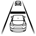 La distance entre des véhicules est réglée à une distance plus courte en appuyant sur l'interrupteur . La distance entre des véhicules est réglée à une distance plus longue en appuyant sur l'interrupteur .