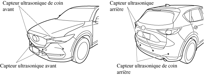 En cas de choc au niveau des pare-chocs, même suite à un accident mineur, faire toujours inspecter le système par un concessionnaire agréé Mazda. Si les capteurs sont faussés, ils ne peuvent détecter les obstacles.