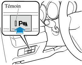 Lorsque le contacteur est sur ON alors que le capteur de stationnement est activé, le témoin s'allume.