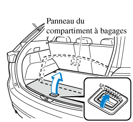 Replacer le panneau du compartiment à bagages dans sa position initiale avant de conduire le véhicule. Si le véhicule est conduit avec le panneau du compartiment à bagages relevé, il pourrait provoquer un accident imprévisible.