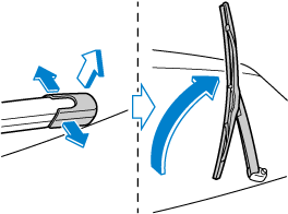 Tourner fermement le balai d'essuie-glace vers la droite jusqu'à ce qu'il se déverrouille, puis retirer le balai.