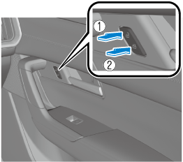 Pour verrouiller de l'extérieur à l'aide de l'interrupteur de verrouillage des portières, appuyer sur le côté verrouillage de l'interrupteur de verrouillage des portières lorsque toutes les conditions suivantes sont remplies, puis fermer toutes les portières.