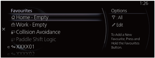 Les noms de la liste des Favoris peuvent être modifiés. |