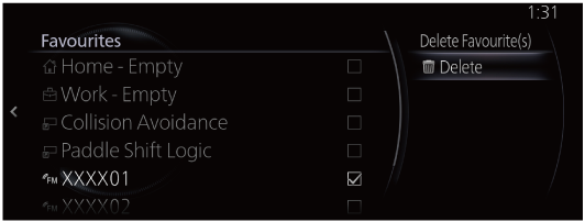 Les Favoris enregistrés peuvent être sélectionnés individuellement pour être supprimés. |