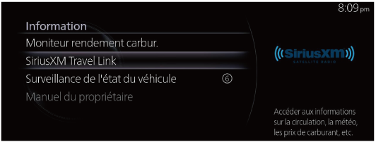 Les véhicules Mazda correctement équipés recevront également les services d'infodivertissement SiriusXM suivants : Trafic, météo, résultats sportifs, prix de l'essence, et plus encore. Pour obtenir une liste des fonctions disponibles dans votre véhicule, visitez le site SiriusXM.com/infotainment et profitez au maximum de votre expérience de conduite.