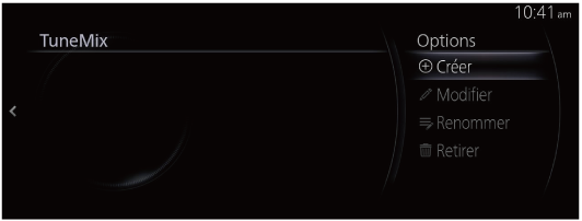 Affiche la liste TuneMix actuellement créée. Sélectionner le canal TuneMix pour commencer la lecture. De plus, un canal TuneMix peut être créé ou supprimé. Pour plus de détails, se référer à TuneMix™. |