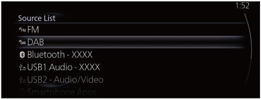 Sélectionner “DAB” sur l'écran Liste des sources.