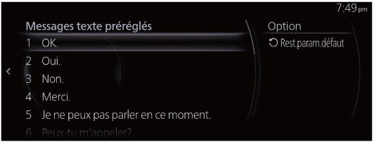 Ne répond qu'à l'expéditeur du message actuellement affiché. Sélectionner la phrase sur l'écran de réponse affiché et sélectionner la phrase à envoyer depuis le message prédéfini. |