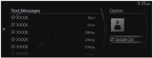 Après la connexion de l’iPhone®, il est possible d'utiliser la fonction “Messages texte” s'il est possible de la sélectionner.