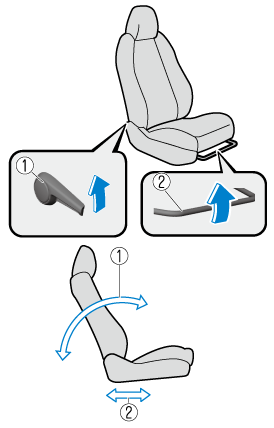 Pour déplacer un des sièges vers l'avant ou vers l'arrière, tirer le levier vers le haut et faire coulisser le siège à la position désirée et relâcher le levier.