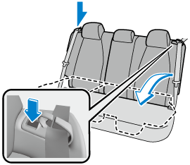 En repliant un dossier de siège vers l'avant, toujours soutenir le dossier avec les mains. Si ce n'est pas soutenu par une main, les doigts ou la main appuyant sur le bouton poussoir pourraient se blesser.