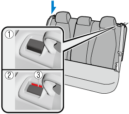 Si l'indicateur rouge est visible derrière le bouton poussoir, cela signifie que le dossier du siège n'est pas verrouillé. Si l'on conduit le véhicule sans que le dossier de siège soit verrouillé, il pourrait se replier brusquement et provoquer un accident.