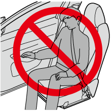 Lorsqu'un adulte ou un enfant de grande taille s'assied sur le siège du passager avant, la diminution du poids total assis sur le siège du passager avant requis pour le déploiement de coussin d'air est dangereuse. Les capteurs de poids du siège du passager avant détecteront la condition de poids total assis réduit et les coussins d'air avant et latéral, les coussins d'air pour les genoux et le système de dispositif de prétension de ceinture de sécurité du passager avant ne se déploieront pas en cas d'accident. Le passager avant n'aura pas la protection supplémentaire fournie par le coussin d'air, cela peut causer de graves blessures. La diminution du poids total assis sur le siège du passager avant peut annuler le déploiement du coussin d'air dans les conditions suivantes, par exemple: