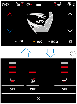 est balayé vers le haut, la température passe à un niveau élevé. En balayant vers le bas, le chauffage de siège est désactivé.