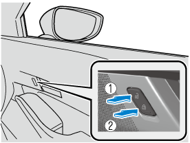 Pour verrouiller à l'aide de l'interrupteur de verrouillage des portières, appuyer sur l'interrupteur de verrouillage des portières lorsque toutes les conditions suivantes sont remplies, puis fermer le hayon.