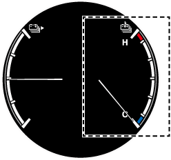 Affiche la température de la batterie haute tension. La plage bleue de la jauge indique que la température de la batterie haute tension est basse et la plage rouge indique qu'elle est élevée et que la batterie surchauffe.