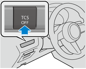 Appuyer sur l'interrupteur TCS OFF pour mettre le système de commande de traction hors fonction. Le témoin TCS OFF s'allume sur le tableau de bord.