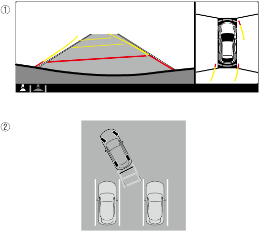 Comme il peut y avoir une différence entre l'image affichée à l’écran, comme indiqué ci-dessous, et les conditions réelles du stationnement, toujours vérifier la sécurité à l'arrière du véhicule et dans la zone environnante directement avec les yeux.