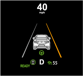Si la fonction d'assistance à la direction ne peut pas maintenir le véhicule dans les lignes de la voie, un avertissement sonore retentit et la ligne de la voie du côté qui atteint la limite est affichée sur l'affichage multi-informations pour vous inciter à actionner le volant.