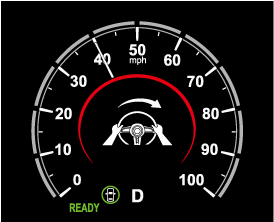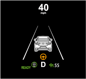 Lorsque que l'assistance à la direction est en marche, le système informe le conducteur à l'aide d'un avertissement sonore, de l'affichage multi-informations et de l'affichage de conduite active qu'il assiste le conducteur dans la manœuvre du volant.