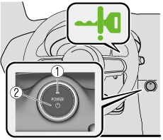 Appuyer à fond sur la pédale de frein et continuer d’appuyer sur le contacteur d’alimentation jusqu'à ce que le système EV soit complètement démarré. Après le démarrage du système EV, le témoin (vert) du contacteur d’alimentation s'éteint et le contacteur d’alimentation est positionné sur ON.