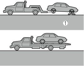 Pour remorquer un véhicule, le transporter avec les deux roues avant soulevées du sol ou avec toutes les roues avant et arrière soulevées du sol.