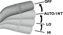En position LO, les essuie-glaces de pare-brise fonctionnent à faible vitesse. En position HI, les essuie-glaces fonctionnent à grande vitesse.