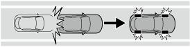 Si une collision se produit au point que les coussins d'air se déploient alors que le véhicule est arrêté, les feux de détresse clignotent pour alerter les véhicules environnants et les freins sont commandés pour réduire les dommages en cas de collision avec un obstacle ou un autre objet.