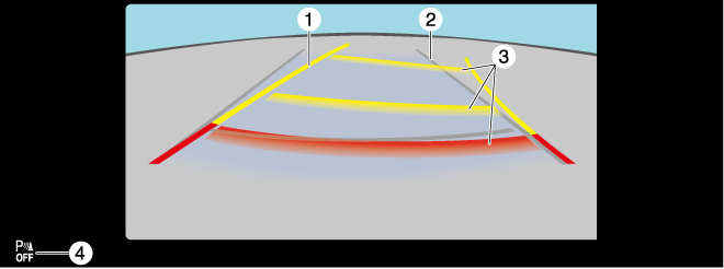 Lignes de guidage de largeur du véhicule (jaunes) |