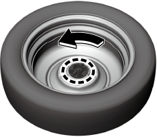 Si le boulon de fixation de la roue de secours ne peut pas être desserré, tenir le bord du pneu et tourner le boulon dans le sens inverse des aiguilles d'une montre jusqu'à ce que le boulon de fixation de la roue de secours tourne.