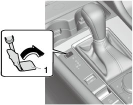 Tout en appuyant sur le bouton de déverrouillage du levier sélecteur à l'aide d'un tournevis à tête plate, appuyer sur le bouton du levier sélecteur pour actionner le levier sélecteur.