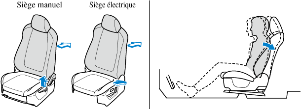 Toujours conduire avec les appuie-tête correctement installés et réglés lorsque les sièges sont utilisés. Par ailleurs, toujours soulever les appuie-têtes sur les sièges arrière lorsqu'ils sont utilisés: