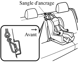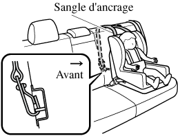 Si le système de dispositif de sécurité pour enfants requiert l'utilisation d'une sangle d'ancrage, se reporter aux instructions du fabricant pour accrocher et serrer la sangle d'ancrage.