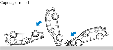 L'illustration suivante est un exemple d'un accident qui ne pas être détecté comme un capotage. Par conséquent, il est possible que les dispositifs de prétension de ceinture de sécurité et rideaux de sécurité avant ne se déploient pas.